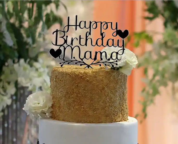 Glitter Gold Silver Happy Birthday Mama Cake Topper Acrylic Cake